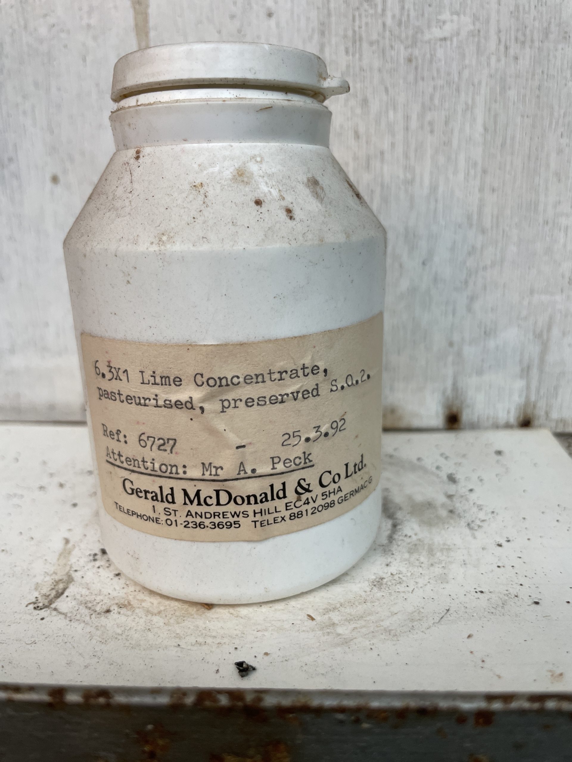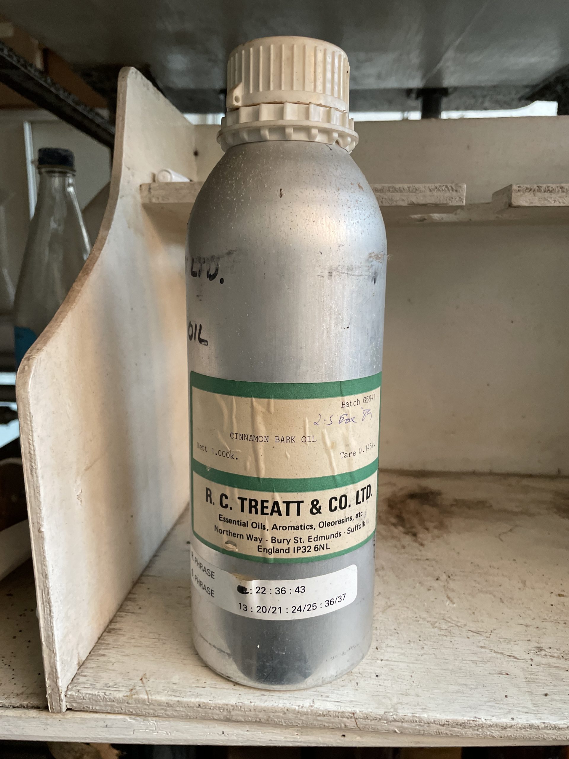 | Oil of lime | 5 litres | Tank room | | 2025-02-15 | https://wordpress.peter.freemyip.com/wp-content/uploads/2025/02/image-24-768x1024.jpg |