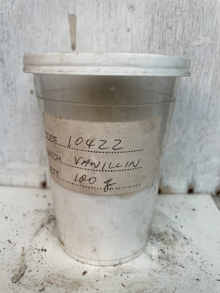 | Ethyl vanillin | 1 litre | Floor | | 2025-02-15 | https://wordpress.peter.freemyip.com/wp-content/uploads/2025/02/image-28-768x1024.jpg |