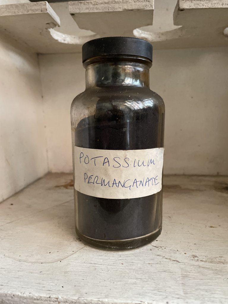 | Potassium permanganate | 5 litres | Floor | | 2025-02-15 | https://wordpress.peter.freemyip.com/wp-content/uploads/2025/02/image-29-768x1024.jpg |