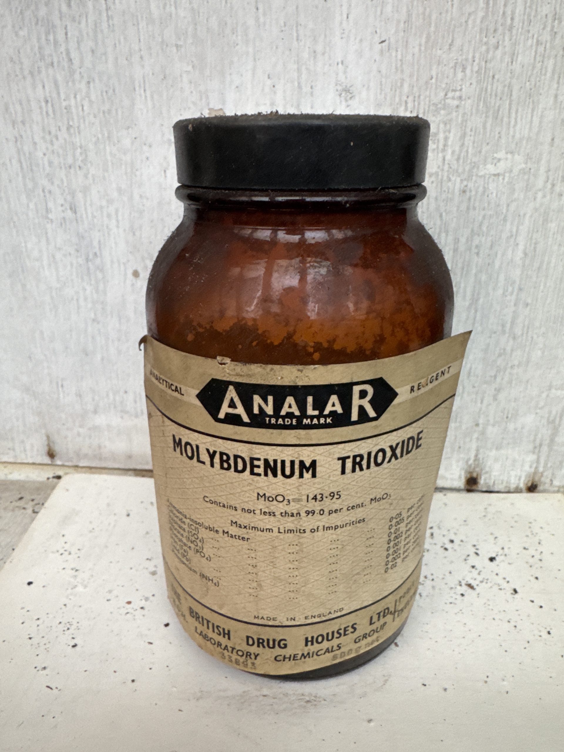 | Molybdenum trioxide | 500 g | 4 | | 2025-01-11 | https://wordpress.peter.freemyip.com/wp-content/uploads/2025/01/image-39-768x1024.jpg |