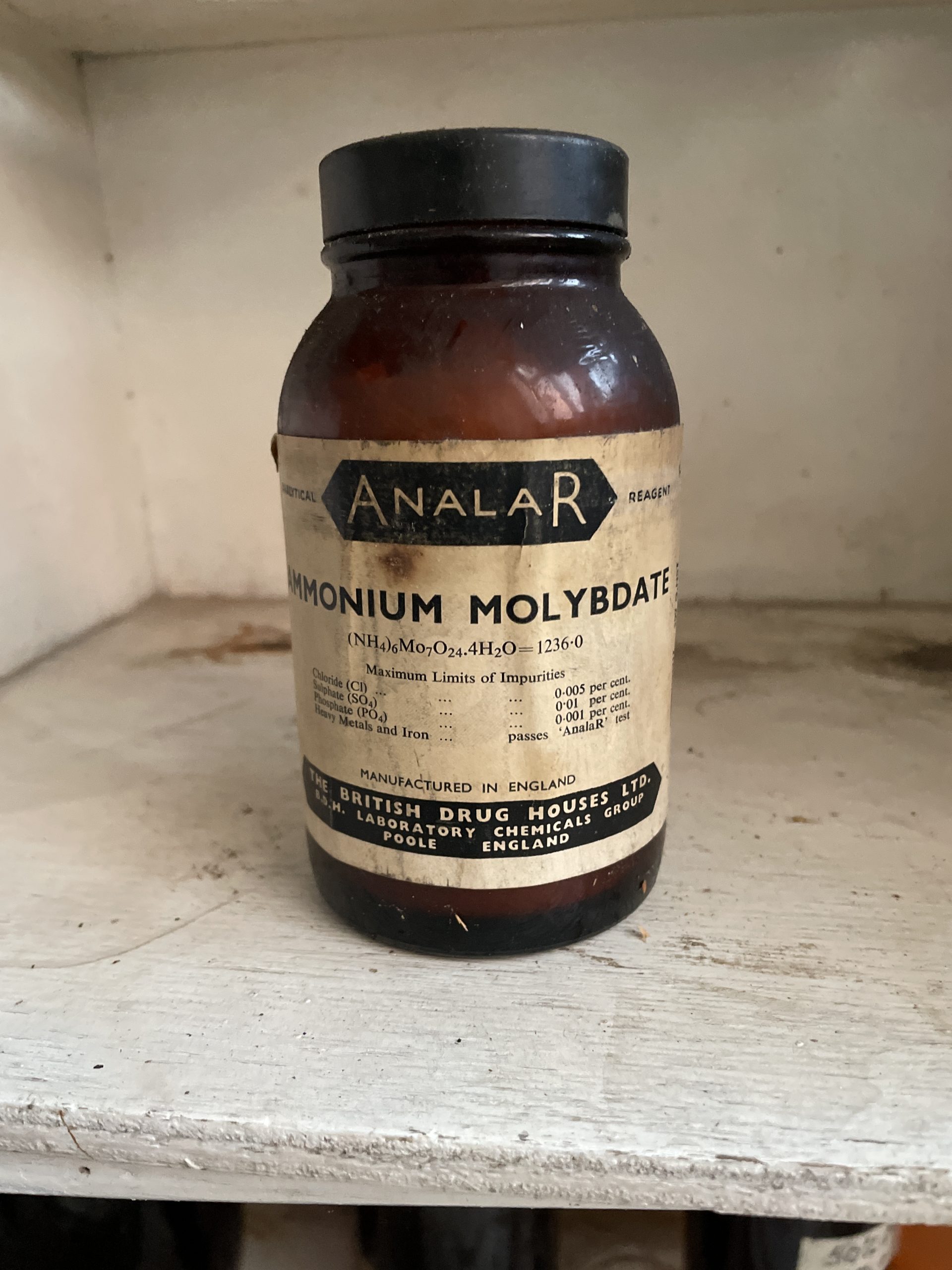 | Ammonium Molybdate | 250 g | 4 | | 2025-01-11 | https://wordpress.peter.freemyip.com/wp-content/uploads/2025/01/image-45-768x1024.jpg |