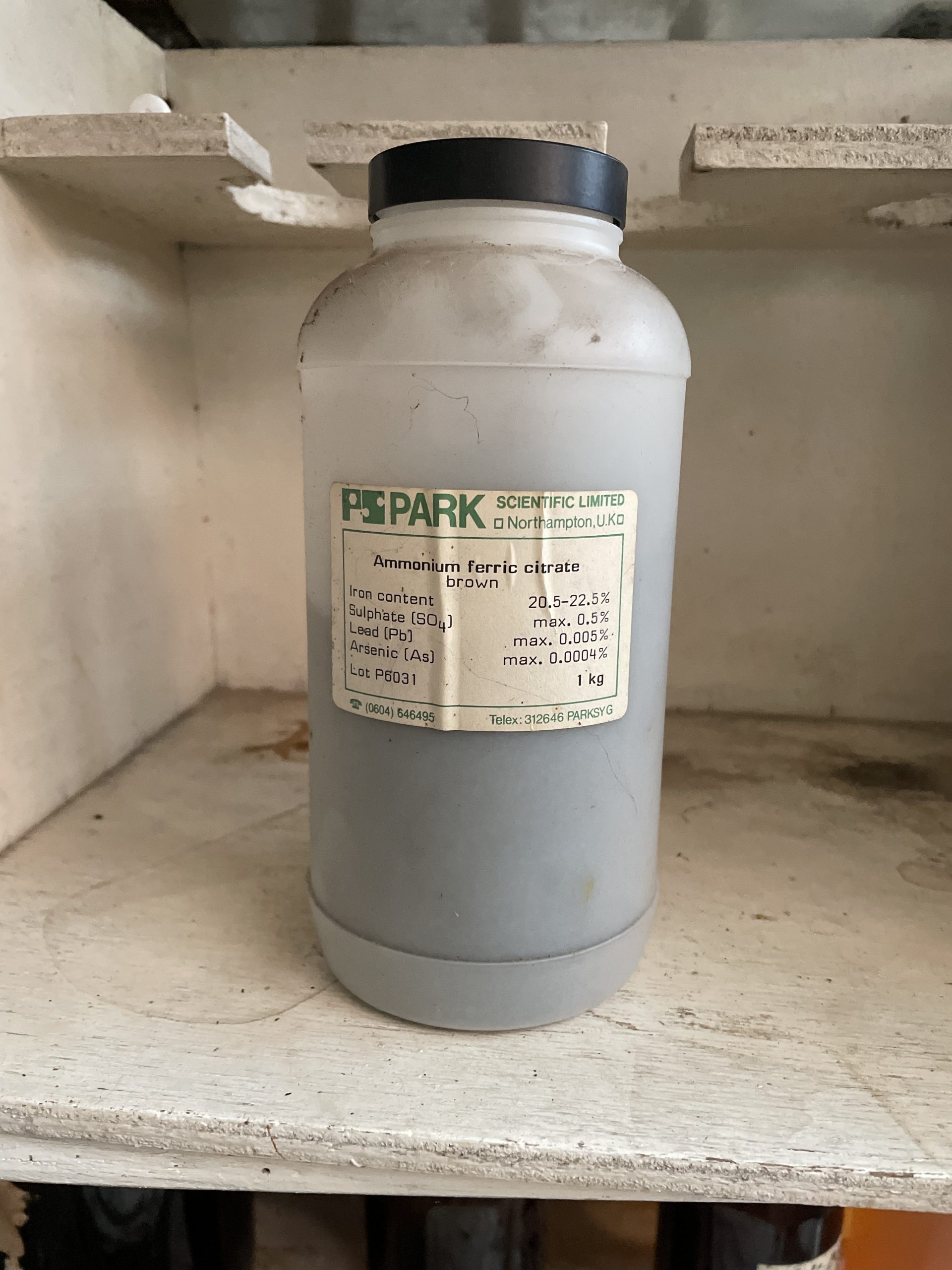 | Potassium ferricyanide | 150 ml | 11 | | 2025-01-11 | https://wordpress.peter.freemyip.com/wp-content/uploads/2025/01/image-145-768x1024.jpg |