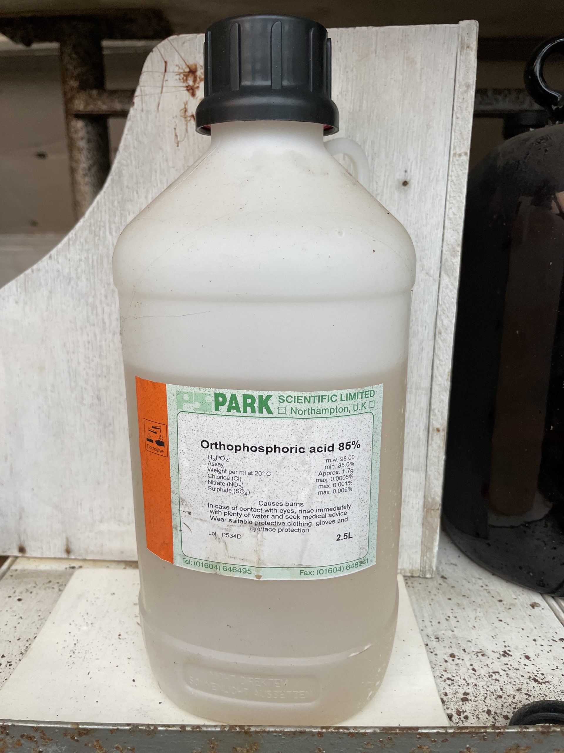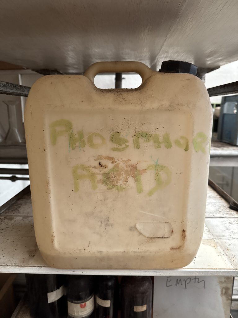 | Phosphoric acid | 2 litres | Floor | | 2025-02-15 | https://wordpress.peter.freemyip.com/wp-content/uploads/2025/02/image-11-768x1024.jpg |