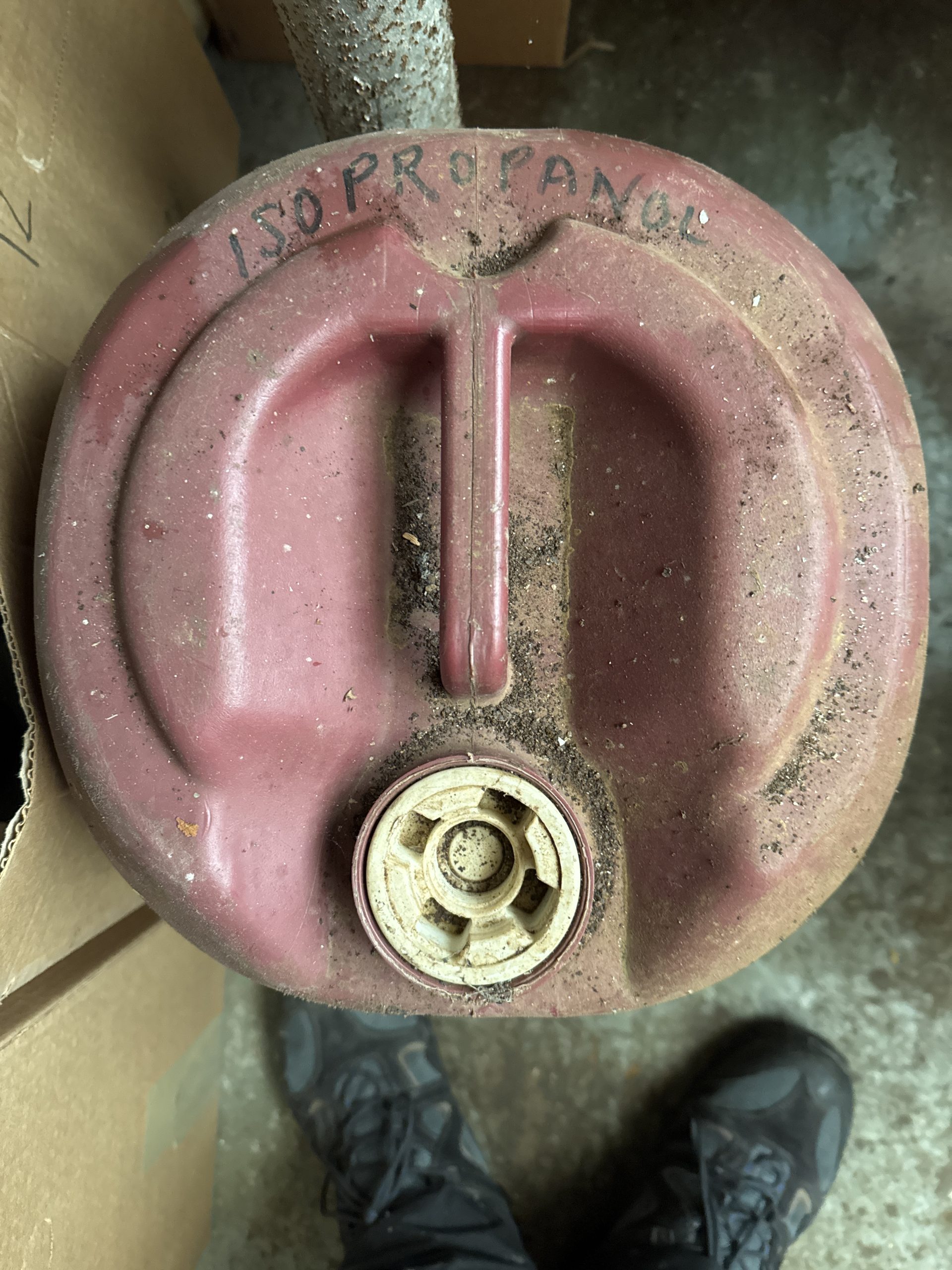| Isopropanol | 10 litres | Floor | | 2025-02-15 | https://wordpress.peter.freemyip.com/wp-content/uploads/2025/02/image-12-768x1024.jpg |