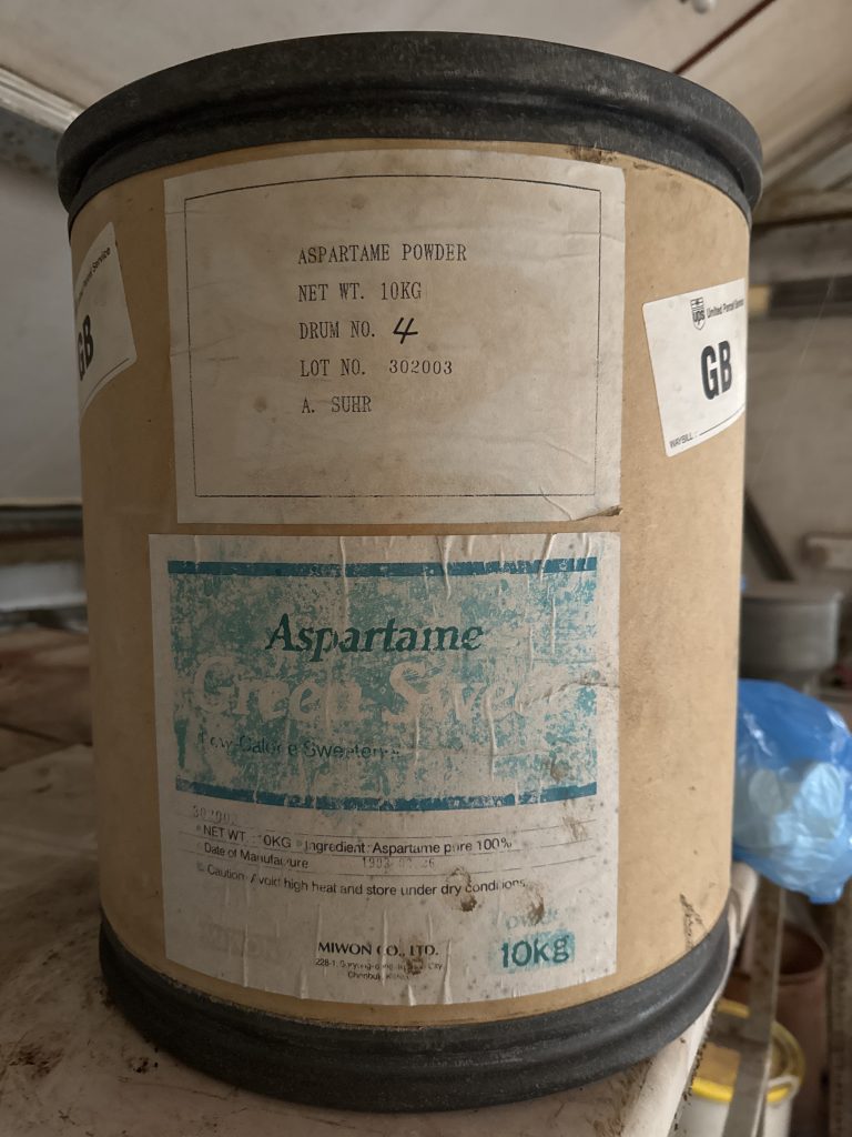 | Aspartame powder | 3 kg | Floor | | 2025-02-15 | https://wordpress.peter.freemyip.com/wp-content/uploads/2025/02/image-26-768x1024.jpg |